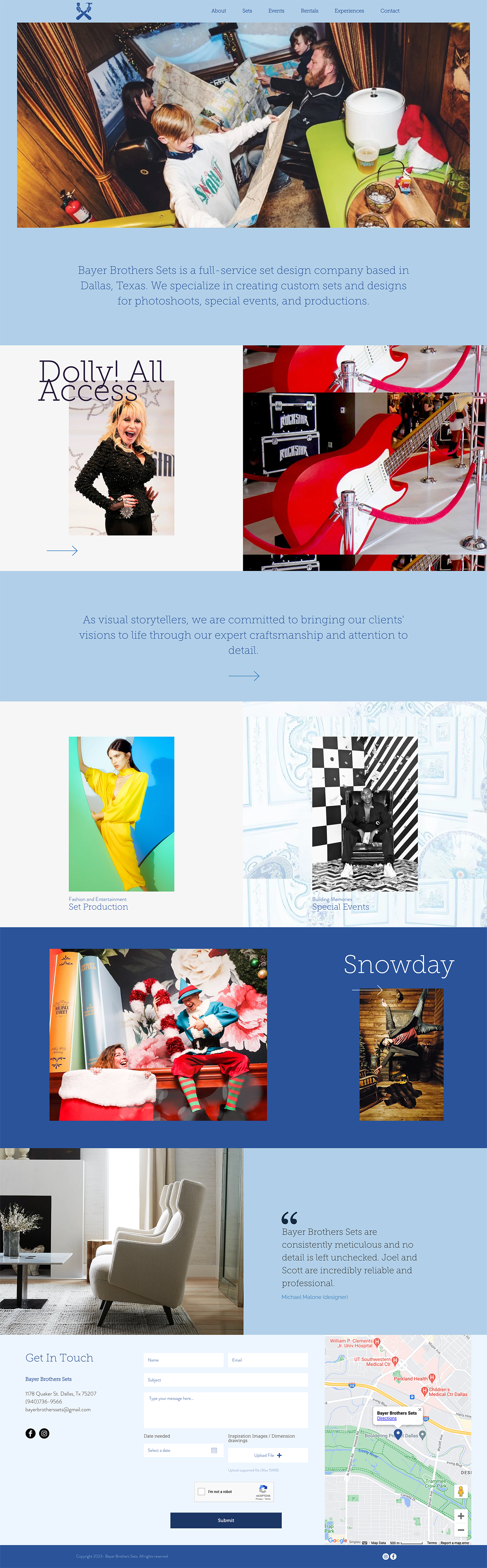 Established in 2008, Bayer Brothers Sets is a leading supplier of custom-made sets and pieces for video and photo studios, storefronts and special events. On this project, I was asked to update the company’s visual identity and their digital presence which included a redesign of the company’s website.